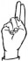 На ћирилици написано БОРИСАВА ЧАКАРАНОВИЋ састоји се из 19 слова [?]. Исписано ћириличном једноручном азбуком за глувонеме:
